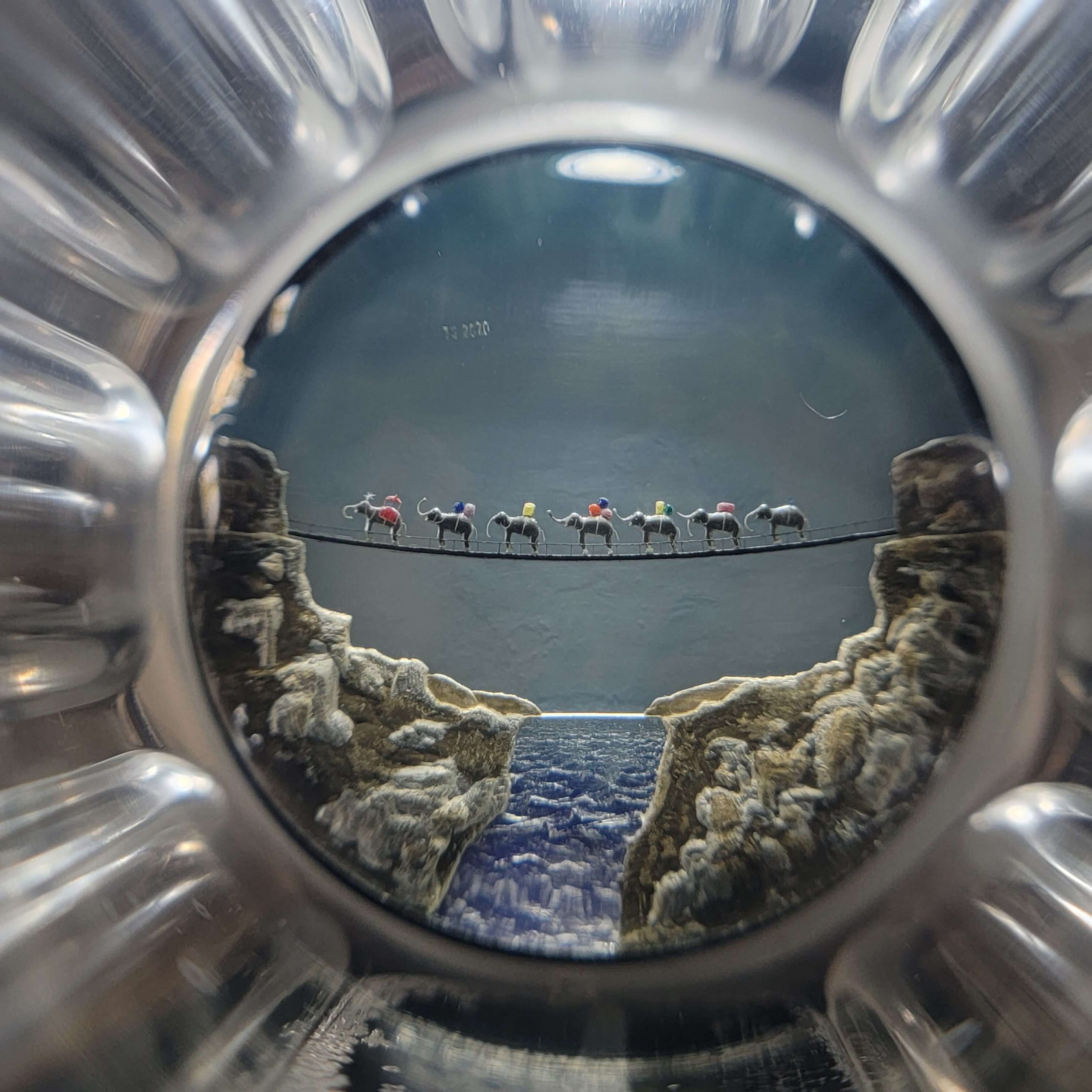 A timeless micro-masterpiece: a caravan of camels carved from precious stones dust travel through the eye of a needle.